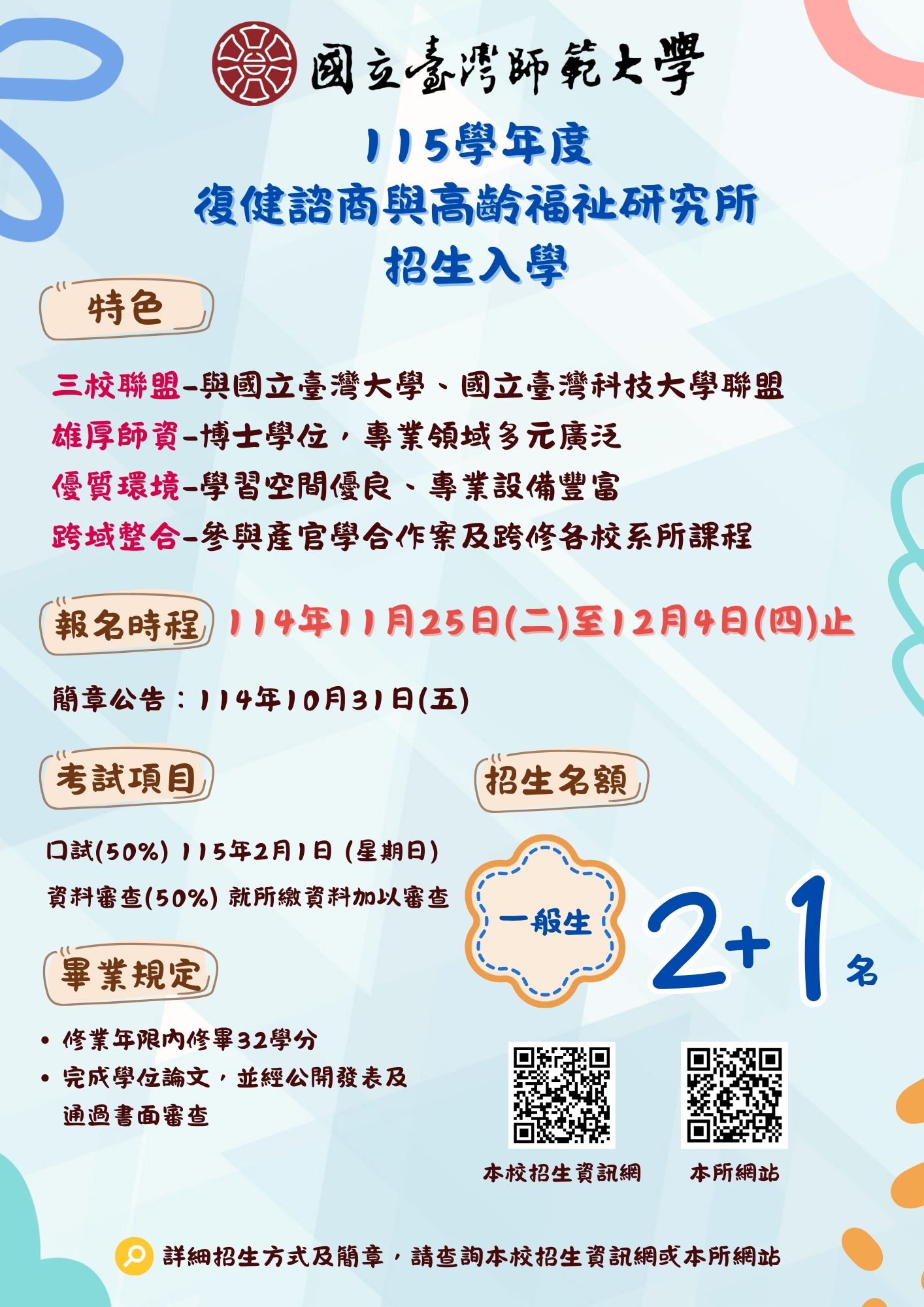 學年度復健諮商與高齡福祉研究所碩士班甄試入學招生簡章