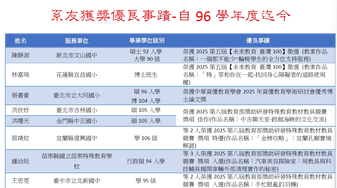 有任何有關特教的相關消息以及系友獲獎事項等,歡迎來信告知、給予指教。