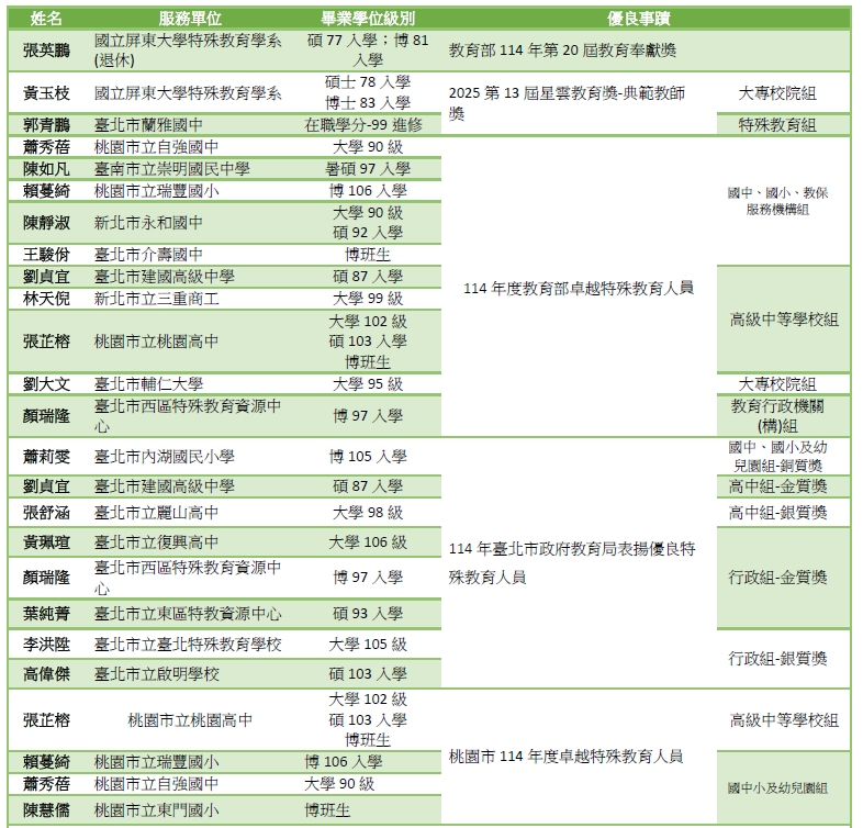 114年度 系所友榮獲特殊優良教師