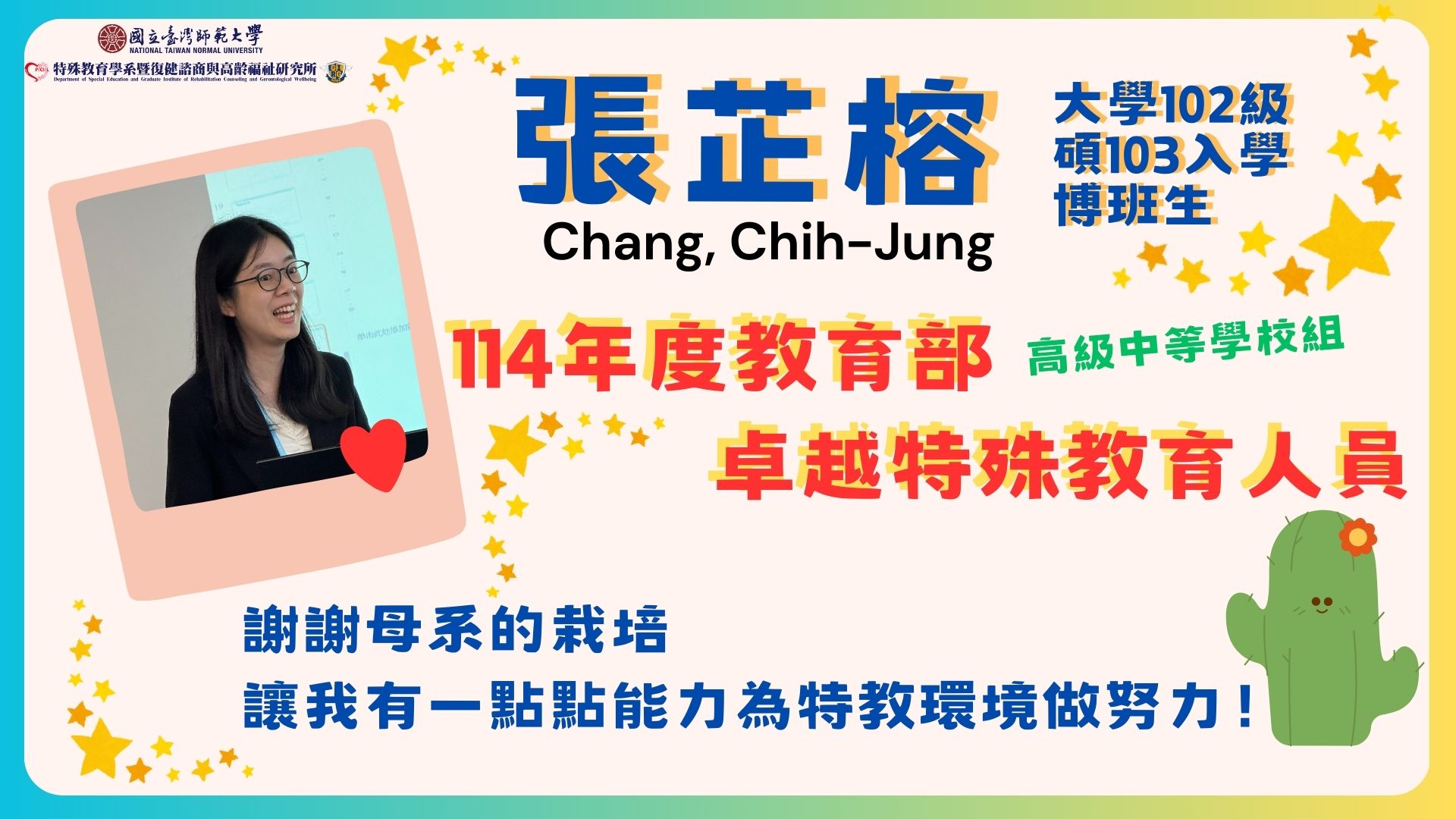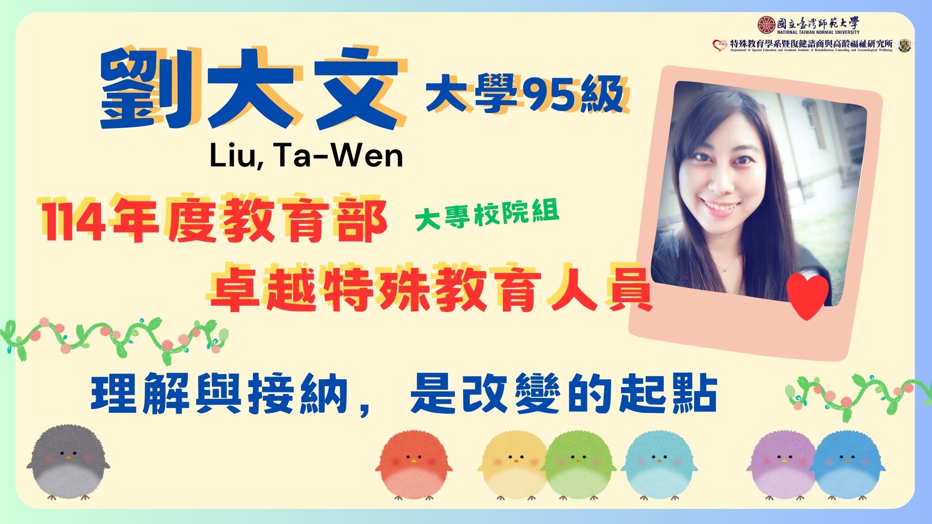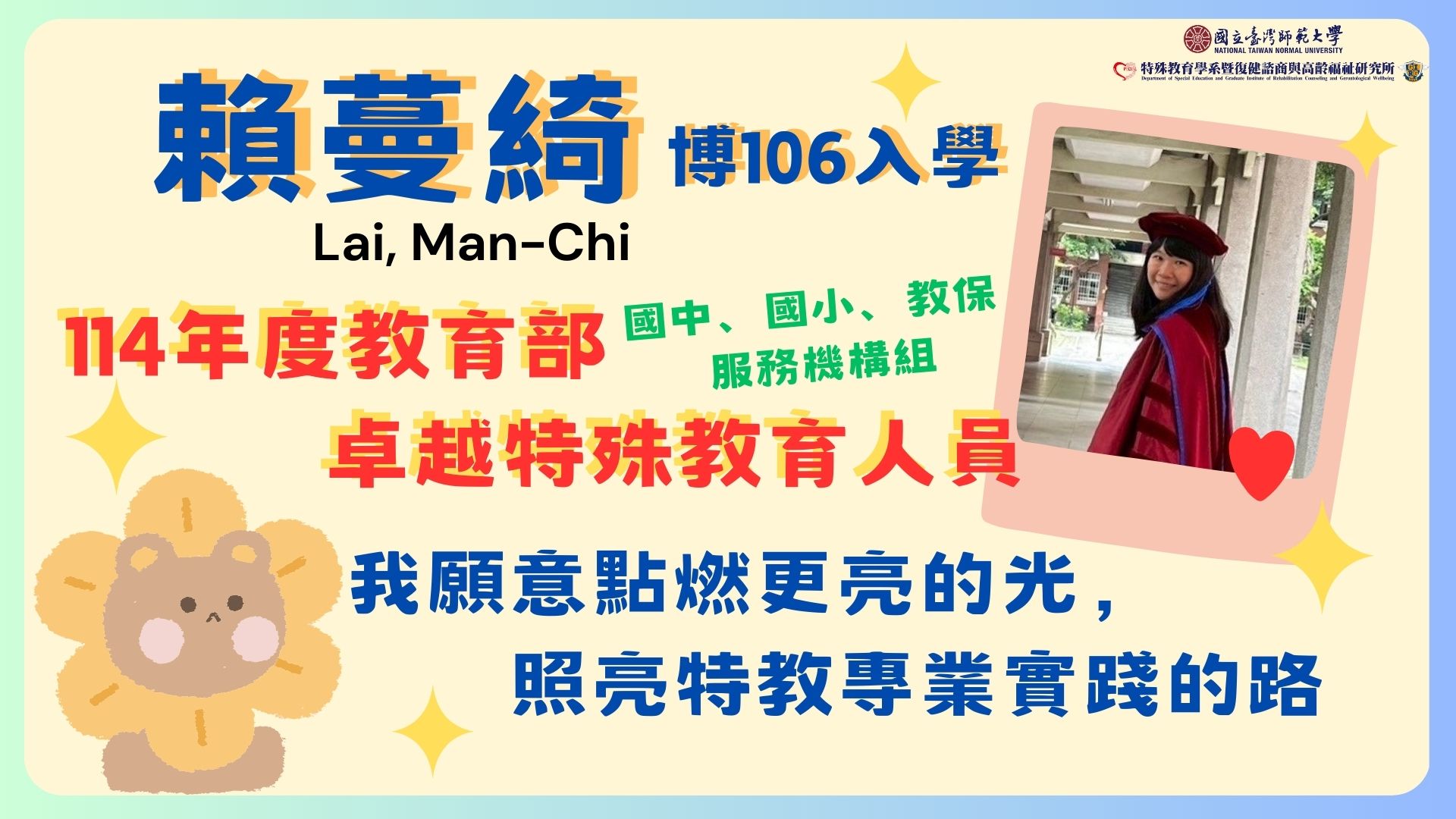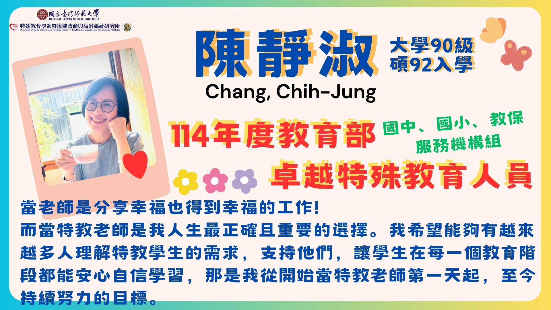 - 特教中心:柯惠菁、鄭聖敏