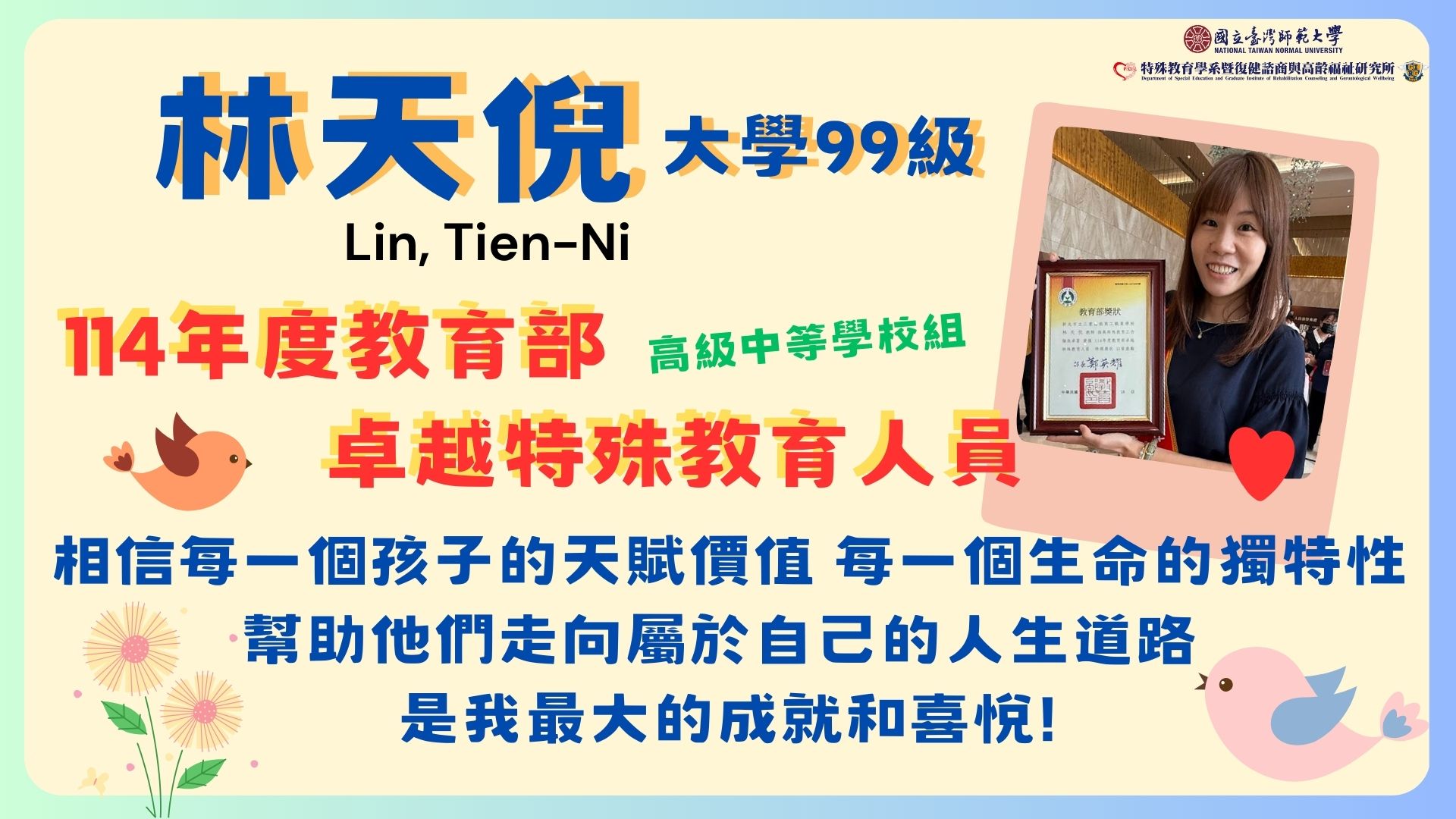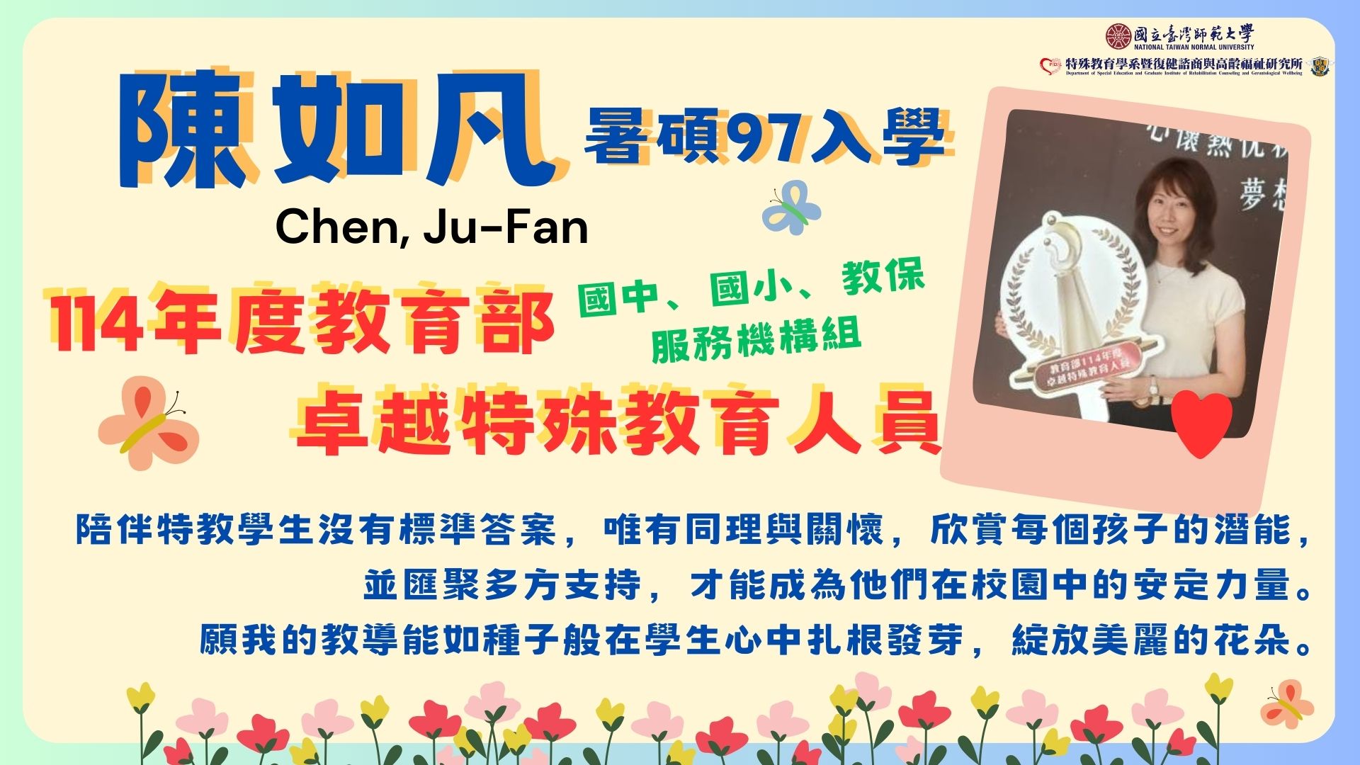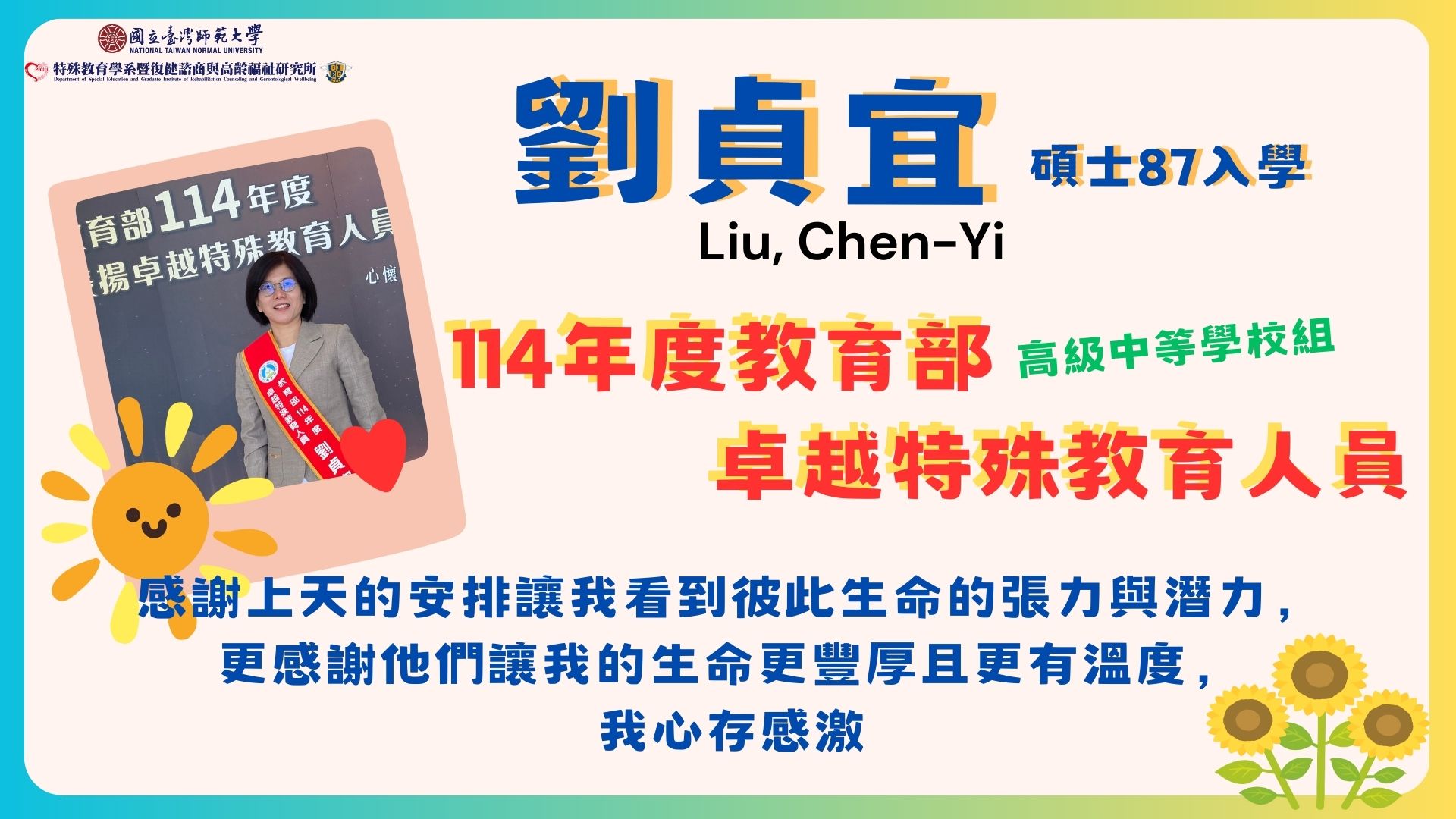 114年度 系所友榮獲特殊優良教師