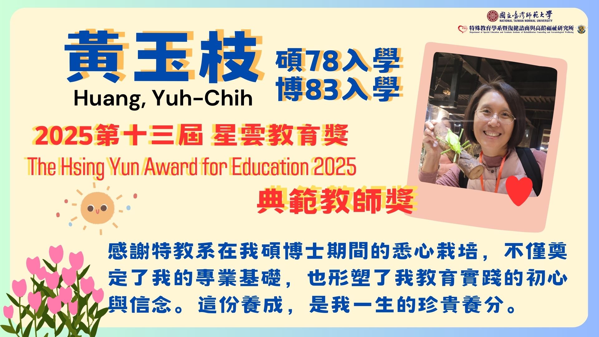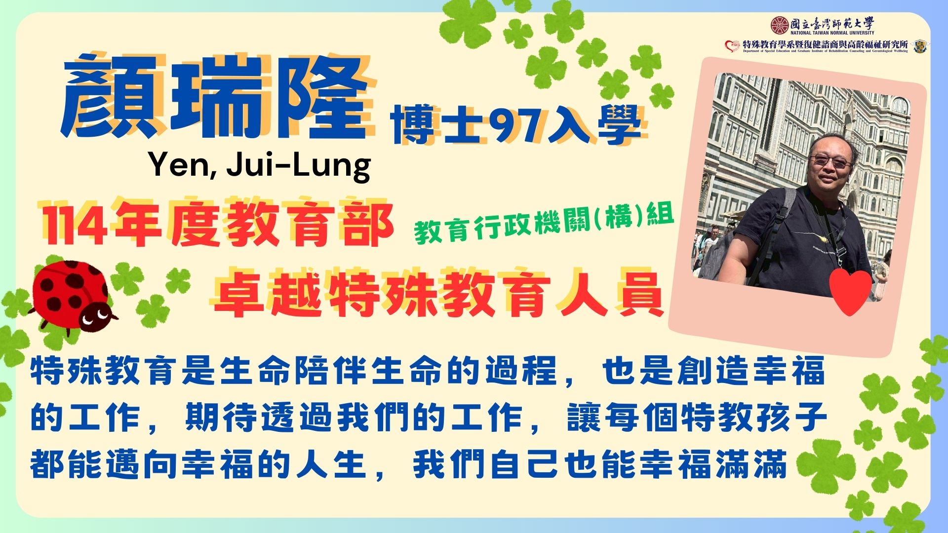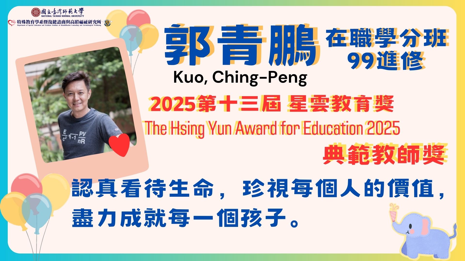 114年度 系所友榮獲特殊優良教師